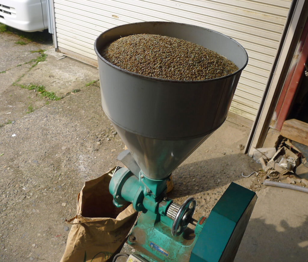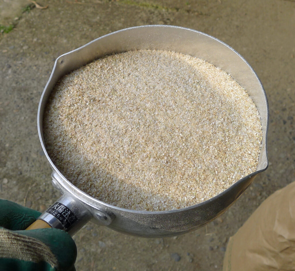 今日の午後、2時間かけて粉にした「くず米」。これが自作ぼかし肥料の大事な素になります。 実はこの肥料、4年前までは1ヘクタールの田んぼすべてに撒いていた、我が家の「秘伝の味」なんです。